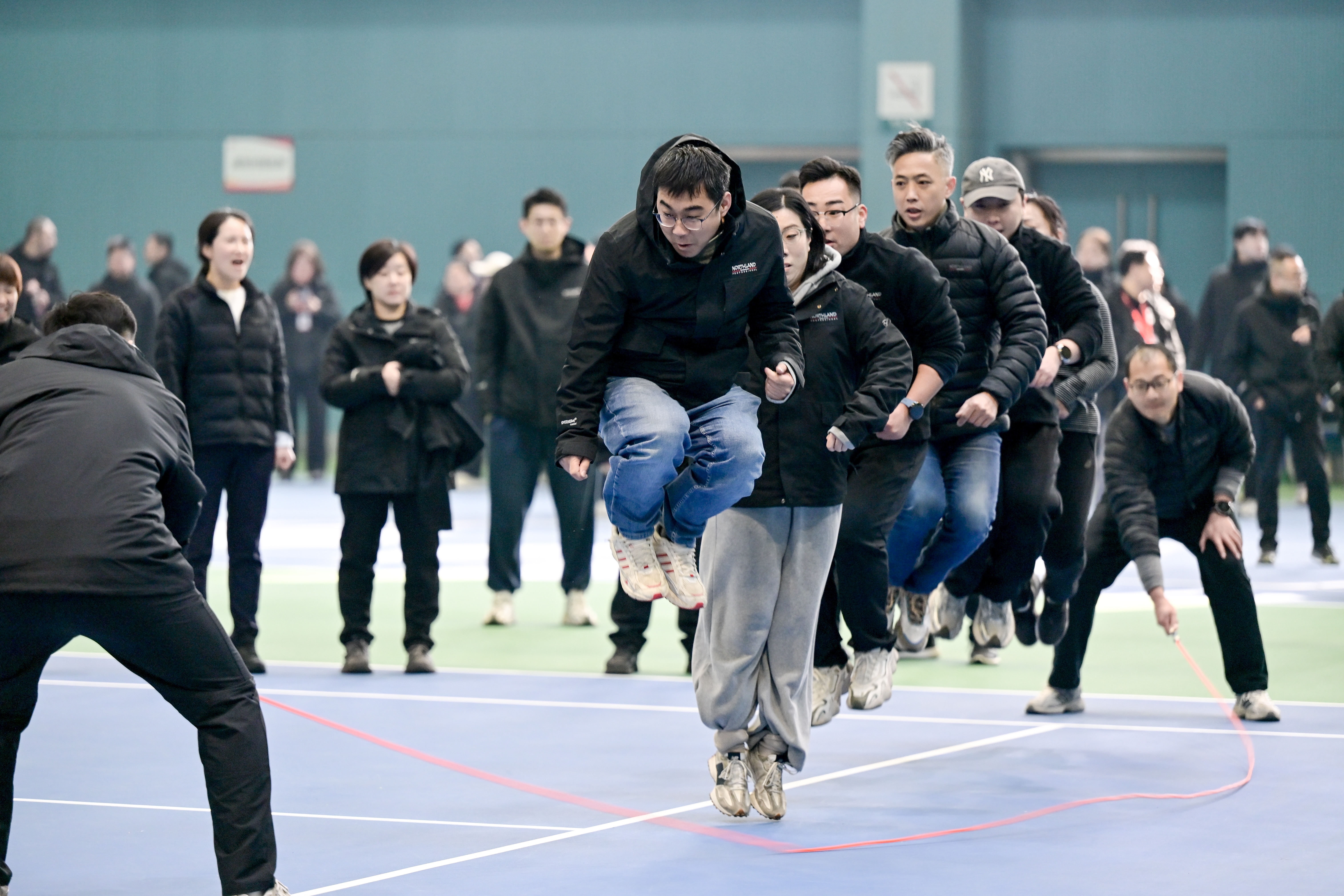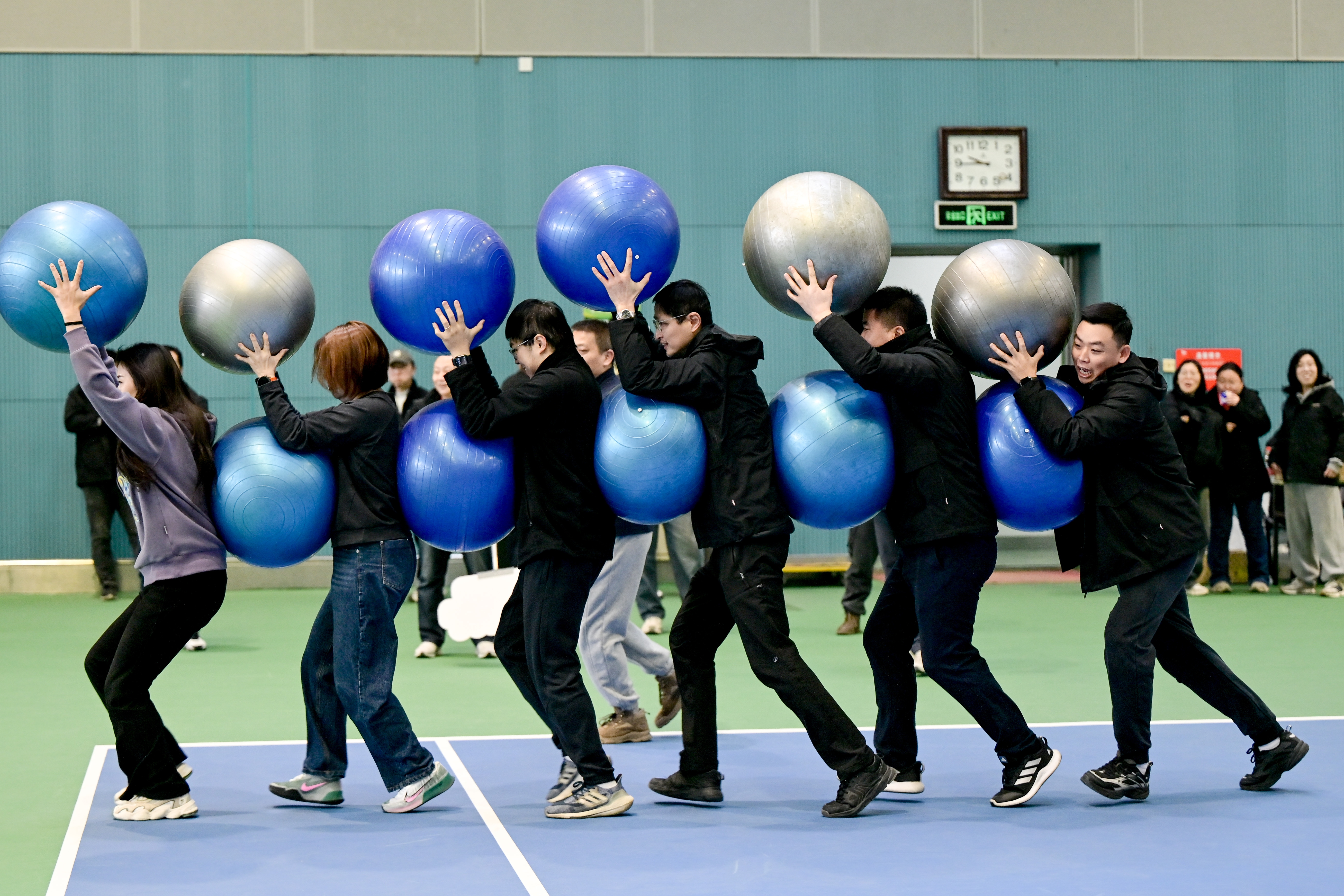 本次运动会主打“全员参与、轻松解压”,告别传统竞技的紧张感,设置“鼓动新春”“龙马并进”等6个趣味项目,既考验协作,也充满欢乐。平日里在工位前忙碌的同事们,此刻化身默契“神队友”,在欢呼与笑声中全力配合。比赛间隙还穿插了抽奖环节,公司领导们化身“锦鲤派送员”,现场为职工抽出一份份“新年好运”,呐喊声、掌声此起彼伏,灿烂的笑容洋溢在每个人脸上,快乐满溢赛场。