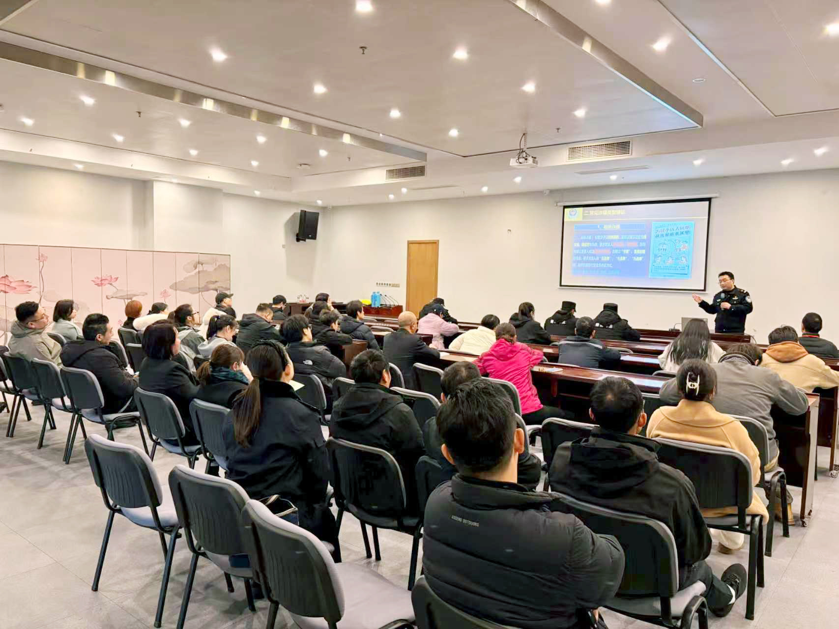 在反诈专题环节,南京奥体中心采取警企联动模式,特邀南京市公安局建邺分局兴隆派出所王彬警官现场授课。王彬结合近期高发典型诈骗案例,深入剖析诈骗手法与防范要点,提醒商户牢记“不轻信、不透露、不转账、多核实”原则,切实提升识诈防诈能力,守护财产安全。